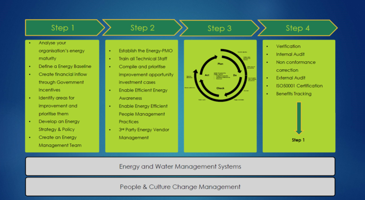 We provide a holistic approach to the customer’s energy utilization. We investigate the supply points and analyse the utilization on the customer’s premises. We will look at optimizing lighting, climate control and element usage equipment. Alternate energy solutions will also be recommended, viz. solar, hydro-power, wind, etc. depending on the financial viability of these solutions.